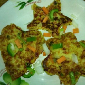 锅里放油,不需要太多,晃匀,如果有煎蛋模具,可以用模具定型,没有可以直接用勺子摊在锅底,待单面煎变色,定型,翻一面,继续!