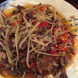 最后放入切好的子姜丝,放入一点点白糖,鸡精,几滴醋,起锅