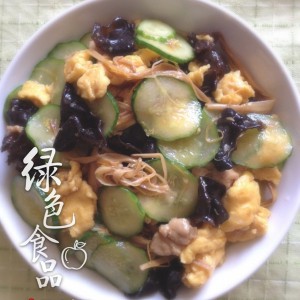 木耳和黄花菜提前发泡好,木耳撕成小朵,黄花菜撕成细条。再把黄瓜切片,鸡蛋打散。瘦肉切片,加少许盐,生抽,料酒,水淀粉和油拌匀。