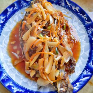 最后把煮好的糖醋汁淋到鱼上面即可,