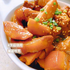 最后撒上葱花和白芝麻,这道茨菇红烧肉就做好啦!