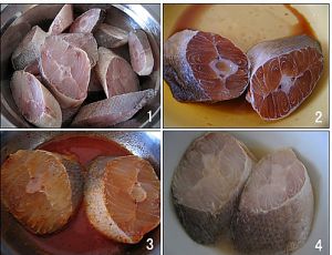 鱼块洗净,分别用调料ABC来腌制鱼块2小时,中途翻面。