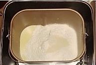 最后是倒入高筋面粉和酵母(酵母要最后放入,不要接触到盐,盐会杀死酵母)