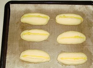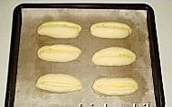 从上向下整形成橄榄形的面包胚,底边可蘸少许清水后捏紧