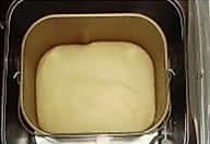 将和好的面团进行基础发酵,时间大约60分钟,至两倍大时取出(用手指蘸少许高粉,从面团中间插入后,洞不回缩即可)
