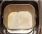 将事先称量好的纯牛奶和鸡蛋液倒入面包桶中