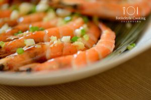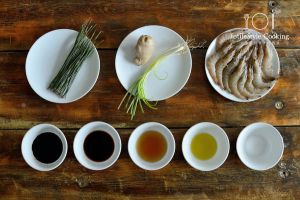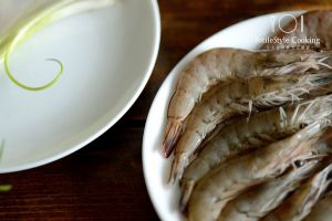 基围虾500克,松针250克,生抽45ml,香醋15ml,姜5克,姜汁5克,香葱5克,盐5克,绍酒15ml