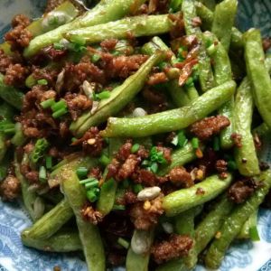 炒的过程就没拍了,干煸四季豆出锅了,撒上葱末,味道美美哒!