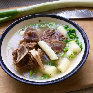 绰好的牛尾放入砂锅,葱段、姜片、八角花椒都入锅,接满凉水大火烧开后加点醋,转小火慢炖两小时。凉水要一次性加够,不要中途不停的添水...