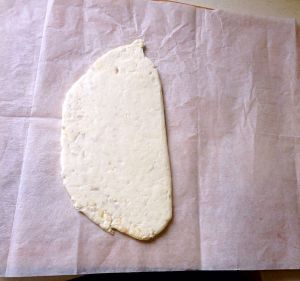 4. 在砧板上铺好一层油纸,将做好的奶糖半成品放在油纸上,上面再盖好一层油纸,用擀面杖擀开至合适厚度;