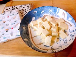 5. 适当冷却,切成小块(注意不要太凉,否则会很硬,不易切块),用糖纸包好即可。