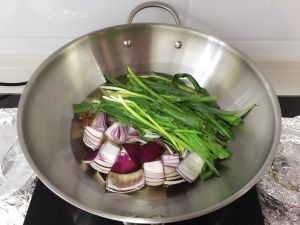 炸至香葱变成枯黄色