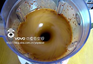 把放凉的枣泥和500g蜂蜜加入食物料理机,搅打5分钟,就得到了蜂蜜大枣茶