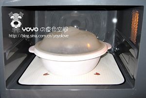 把去核的大枣加100g水放进微波炉,高火20分钟,中间翻动一次