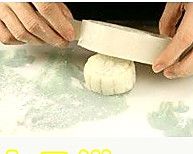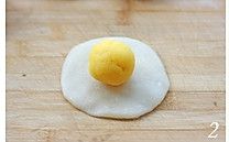 掌心轻推包好收口,搓圆成月饼毛坯;
