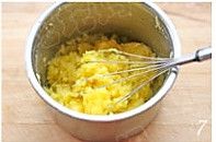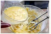 分两至三次加入打散的鸡蛋,搅打均匀;