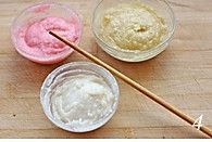 分成均等的三份,在另两份中各加入色素香油搅拌均匀,上锅蒸15-20分钟,然后取出晾凉即可(在风中彩虹的步骤介绍中,些一步是要边蒸边搅的,俺因为是用热牛奶搅的粉,糯米粉已经涨发均匀了,所以不用再搅,只需蒸熟就可以了,这样也比较省事)
