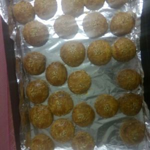 软化黄油加糖粉打发,打发过后加低筋面粉拌匀过后加花生芝麻椰蓉再拌匀,过后整形切一小块一小块的搓圆压扁刷蛋液点芝麻进烤炉150度13分钟(一切以实际烤箱温度为准)