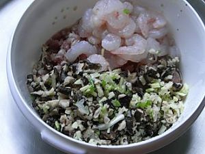 放葱姜末.料酒.盐.鸡精.生粉顺个方向搅匀。