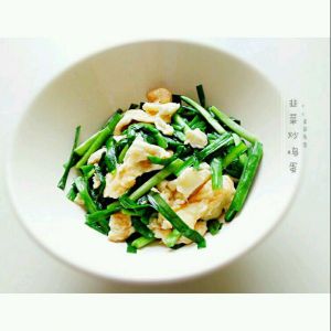 鸡蛋炒熟后加入切好的韭菜快速的翻炒几下(有点变色了就可以了,别炒太长时间,老了不好吃)