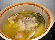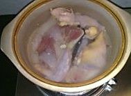 把切下的鸡肉放入砂锅,少许鸡油,加大半锅水,加煮