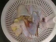 整鸡去头、尾,把鸡腿、鸡翅、鸡脚等切下,洗净