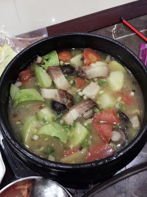 食材都熟了的时候放入辣椒段,鸡精,熬煮两分钟
