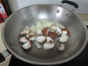 倒入黄酒后大火烧开盖上锅盖转小火烧5分钟左右