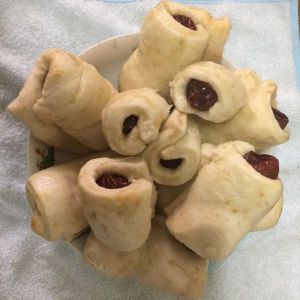摆好红枣,这是放两个枣的,也可以只放一个枣,当然面要切的窄一些