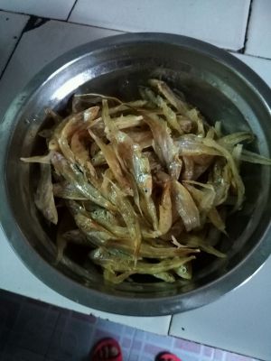 干小黄鱼用冷水泡半小时,等软化后洗净沥水待用。