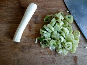 大葱切段,切成葱花备用。