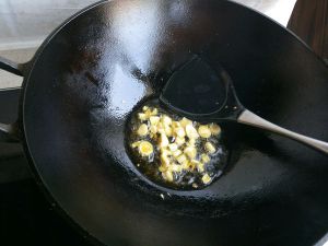 锅中热油,加入大蒜爆香。