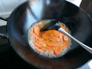 加入胡萝卜翻炒。