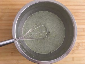 3加入牛奶和水拌匀,颗粒会比较多,搅拌过程有点长。