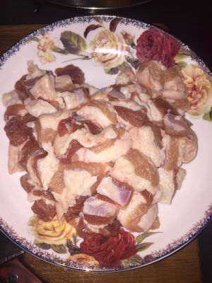 五花肉切块,按照个人喜好选择肉的肥瘦程度,我喜欢瘦一点的