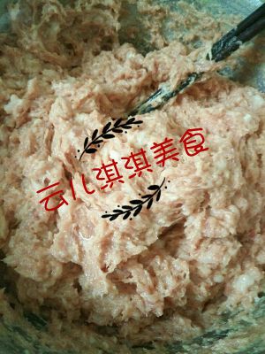 将猪肉,鱼肉,姜用绞肉机绞成肉泥,加入盐,白糖,酱油,蚝油,鸡粉往同一方向进行搅拌,慢慢的搅拌到肉上劲,手感觉到要越来越用力,很难搅动,打入两个鸡蛋,还是按刚才的搅拌方向,搅到鸡蛋完全被肉吸收,再慢慢搅到越来越紧