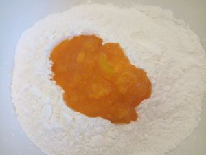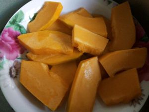 锅中倒入油,油温五成热,放南瓜球小火慢慢炸,用勺子轻轻压一下南瓜球,炸的过程中,它会慢慢变大,浮起,炸至金黄色即可。