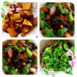 将葱姜蒜爆香,倒入过好油的茄子土豆青椒,翻炒几下,然后倒入有各种调料兑好的汤汁,再翻炒几下出锅即可。