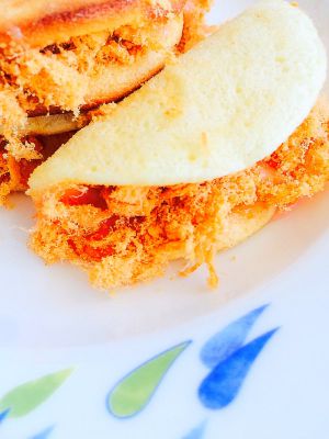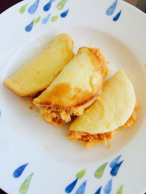 烤箱预热5分钟 180度烤10分钟 加入炼乳和肉松