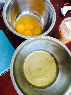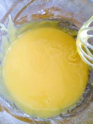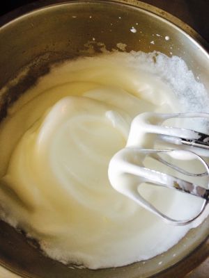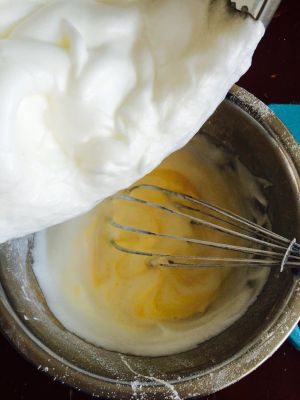 蛋清加入糖粉10g 玉米油 低粉搅匀