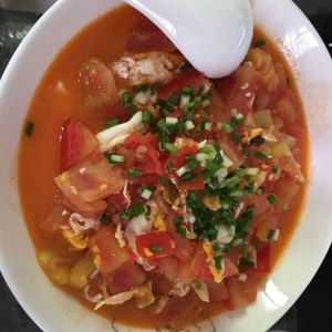 先将西红柿再热水中烫过去皮,再切成丁,鸡蛋打散,加入少量的白开水