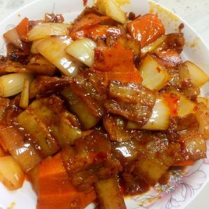 出锅开吃吧(应该加青椒,颜色搭配会好看点)。