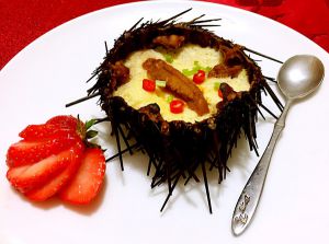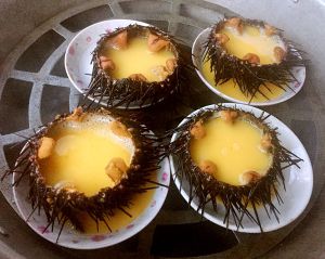 买了几个大海胆准备蒸蛋营养一下,海胆冲洗干净