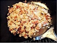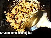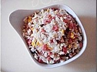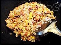 放入火腿丁翻炒均匀;