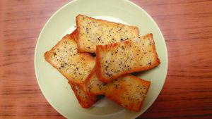 切片面包一切两半,将做好的大蒜酱涂在上面,烤箱180度,15分钟,香脆可口的蒜香面包就出炉了~