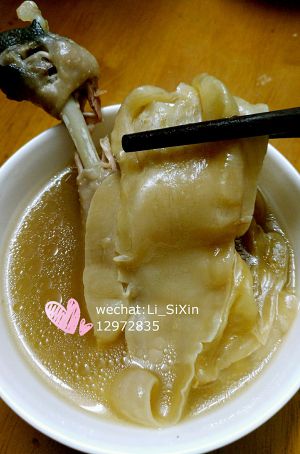 花胶泡软清洗干净(这次用的是小北海胶,个头小小的,但是家里平日煲汤很不错,胶质也很好,价格不贵,一次抓一把来煲汤也不会心疼)