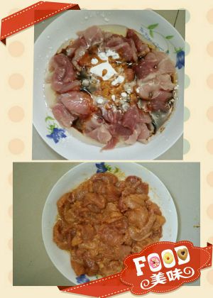 瘦肉洗净切片,加入两小勺淀粉,少许油,适量酱油,搅拌匀腌制备用