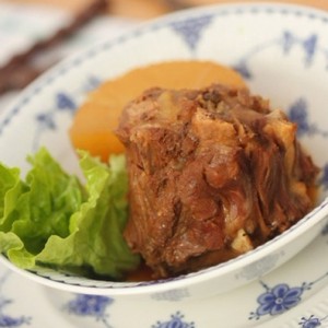 白萝卜去皮,切块,羊蝎子炖好之后放入萝卜煮透。一起泡在汤汁里一两个小时更加入味。