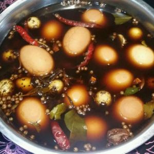 煮好的料汁水没过蛋蛋即可,腌至1天就可以吃啦,腌制的时间越久味越浓
