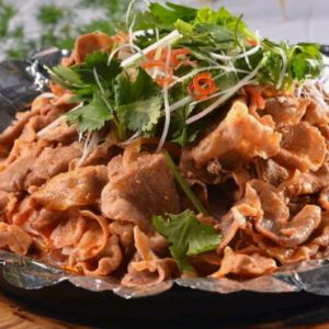 1羊肉切片,肥瘦分开切,羊肉片放入锅内用热水焯煮一下,变色后捞出。